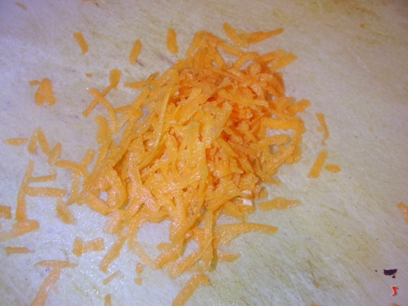 Il primo passo č preparare gli ingredienti per il soffritto, ovvero la cipolla e il sedano, da tritare, e la carota, da grattare grossolanamente.
