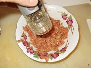 Una volta amalgamato il tutto pepate e salate leggermente. Mescolate bene con una forchetta o con le mani e mettete da parte.