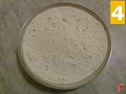 Iniziare la preparazione dell’impasto prendendo la quantità di farina necessaria alla ricetta (4), disporla su di una superficie (5) e realizzare poi la classica forma di fontanella realizzando un buco al centro della farina (6).