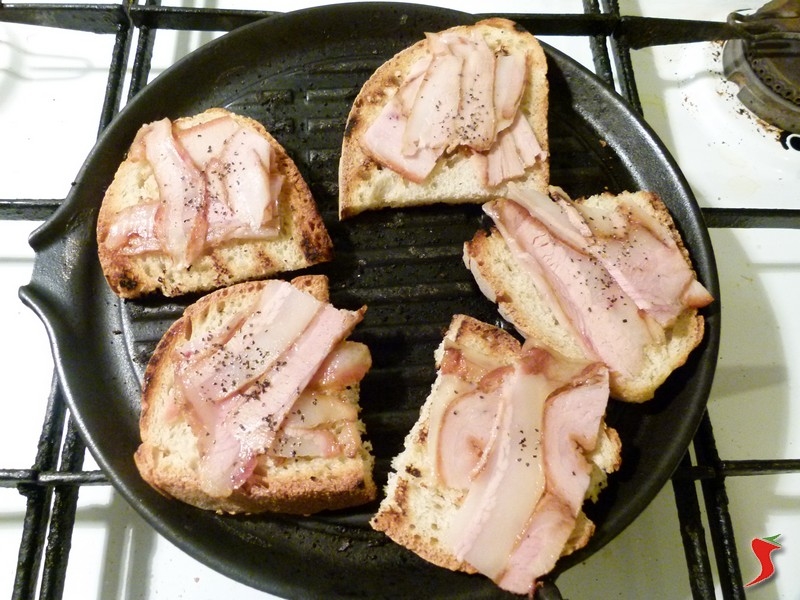 La bellezza e la bontà delle bruschette risiede nel fatto che queste possono essere condite in mille modi diversi, a seconda dei propri gusti, delle proprie preferenze e delle proprie esigenze. Una tipologia di bruschetta molto buona, ma anche alquanto grassa, è quella con cigoli e pepe. La procedura per il pane è sempre la stessa. Per quanto riguarda i cigoli, questi vanno tagliati a fette e vanno poi posizionati sulla piastra quando il pane si sta riscaldando. In questo modo anche il salume risulterà caldo.