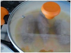 Poniamo un tegame non troppo grande su una fiamma dolce, e dopo avere fatto scaldare leggermente un paio di cucchiai d’olio extravergine d’oliva aggiungiamo le verdure per il soffritto. Un trucco affinchè il soffritto non bruci e aggiungere un pizzico di sale, in questo modo la cipolla rilascerà parte dell’acqua che contiene mantenendo un po’ di umidità sul fondo.