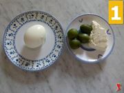 Quindi, per la realizzazione delle tartine, da servire come antipasto, si utilizzeranno i seguenti ingredienti: uova sode, olive verdi e formaggio spalmabile Philadelphia (1), tonno e maionese (2), sottilette e mousse di tonno (3) e pomodori.