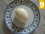 Per preparare le tartine è utile iniziare dagli ingredienti che richiedono un po’ più di tempo per la propria preparazione, come ad esempio con le uova (7). Prendere un piccolo bricchetto e riempirlo con dell’acqua, riporre al suo interno anche l’uovo per la cottura (8). Non appena l’uovo sarà cotto, riporlo sotto l’acqua fredda per farlo raffreddare e, infine, sgusciarlo (9).