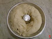 Appena la torta salata rustica sarà stata farcita con i salumi tagliati a dadini e il formaggio, arrotolare l’impasto su se stesso e creare poi una sorta di ciambella da inserire all’interno di un recipiente che dovrà essere cosparso prima di burro e poi di farina onde evitare che l’impasto possa attaccarsi alla superficie e ai bordi.