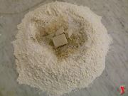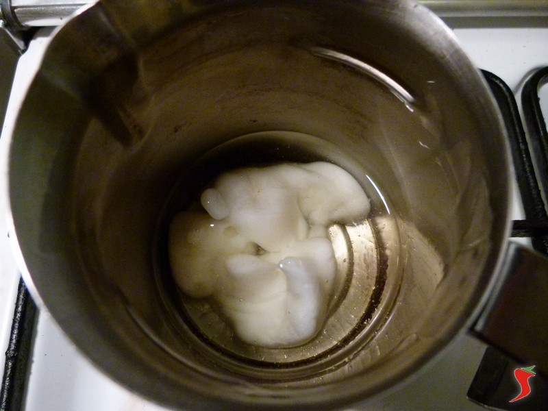 Tra i diversi ingredienti da aggiungere alla farina vi è anche lo strutto, il quale, essendo di consistenza solida, si consiglia di scioglierlo sul fuoco per poterlo utilizzare.