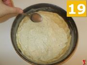 Infine spalmate bene (19) la crema sulla base della torta per creare uno strato omogeneo che occupi tutta la superficie, grattaci sopra il parmigiano (20) e quindi infornate (21) in forno preriscaldato a 160°C per circa mezzora. Una volta pronta, sfornate la torta e fatela freddare rima di servire in tavola.