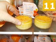 Adesso prendete delle coppette di media dimensione di vetro, e trasferite la crema dal piatto con un cucchiaio (7), fino al completo riempimento, dopo aggiungete acqua in una teglia di medie dimensioni e ponetevi al suo interno le coppe con la crema (8) infornate a 150 gradi per circa quaranta minuti (9).