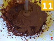 Continuare a battere fino al raggiungimento di un’unica miscela densa ed omogenea. Successivamente, aggiungere il lievito pan degli angeli (13) e mescolare nuovamente con il battitore elettrico (14).