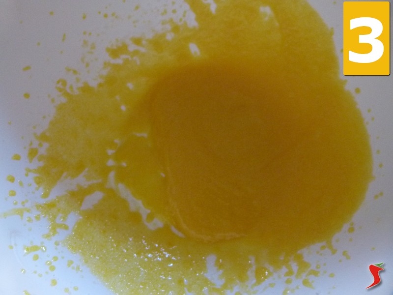 Iniziare la preparazione della torta prendendo un recipiente capiente e dai bordi alti all’interno del quale andranno aggiunti lo zucchero e poi il burro. Dopo aver riposto burro e zucchero all’interno del recipiente con l’ausilio di un battitore elettrico iniziare a mescolare il tutto (1). Successivamente, prendere un altro recipiente capiente e iniziare a rompere le uova separando accuratamente il tuorlo, che verrà aggiunto al contenitore con burro e zucchero (2) e nell’altro verrà riposto l’albume. Dopo aver aggiunto tutti e tre i tuorli nel recipiente con zucchero e burro, iniziare a battere con un battitore elettrico fino a creare un unico composto omogeneo (3).