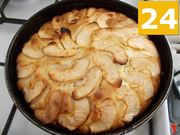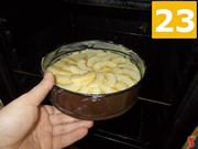 Ora potete versare il composto con le mele nella tortiera (19) e pareggiare il tutto con un cucchiaio in modo da avere il composto ben distribuito (20). Quindi iniziate a decorare la torta con le fettine di mela avanzate (21) distribuendole circolarmente sopra il composto.