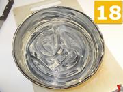 Una volta tagliate le mele unitene subito ¾ alle crema (16) prima che si anneriscano, lasciando il resto per la decorazione. Mescolate bene (17) in modo che le mele si distribuiscano uniformemente nella crema. Quindi prendete una tortiera, di quelle che si aprono di lato, imburratela e infarinatela (18) leggermente in tutte le sue parti.