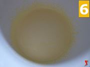 Nel frattempo che l’acqua arrivi ad ebollizione, iniziate a rompere le uova all’interno di un contenitore dai bordi alti (4) e aggiungete lo zucchero. Iniziate a battere il tutto con un mixer e poi aggiungete l’acqua che avete fatto bollire in precedenza (5) in maniera molto lenta e graduale. Continuate a mescolare con il mixer lasciando che le uova si montino (6).