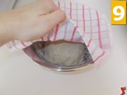 Adesso con le mani impastate in modo energico tutti gli ingredienti (7), fino a quando non si sarà formato un composto consistente e liscio (8). Una volta formata una palla di pasta, coprite il composto con un canovaccio di cotone (9) e lasciate lievitare per un minimo di quattro ore.