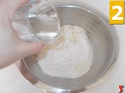 La ricetta che vi proponiamo oggi è un piatto che potete realizzare facilmente in casa, apprezzato da tutti e molto nutriente.Per la preparazione dell'impasto della pizza abbiamo aggiunto i latte in... Iniziate la ricetta prendendo una planetaria di medie dimensioni oppure un contenitore capiente e versate al suo interno la farina 00 (1), dopo unitevi l'acqua a temperatura ambiente (2) e ancora lo zucchero semolato (3).