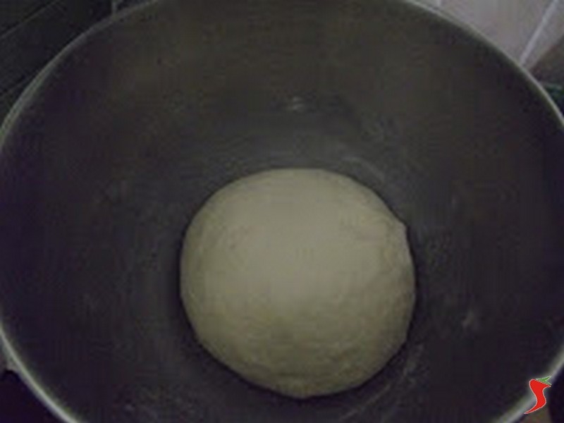 Mettiamo tutta la farina in una ciotola, aggiungiamo il lievito ormai liquido, l'olio, e iniziamo ad aggiungere la prima metà dell'acqua. Solo dopo avere aggiunto la prima metà dell'acqua e mescolato, possiamo aggiungere il sale, continuiamo poi ad aggiungere la restante acqua.Quando avremo aggiunto tutti gli ingredienti ci trasferiamo su di un piano ed impastiamo con vigore, tirando la massa lontano da noi e arrotolandola verso di noi.Lavoriamo in questo modo per qualche minuti fino a quando non sentiamo l'impasto "elastico".Terminata questa operazione si lascia lievitare coperto da pellicola al riparo da sbalzi di temperatura fino al raddoppio. Il tempo necessario per il raddoppio può variare da 40 a 60 minuti in base alla temperatura dell'ambiente.