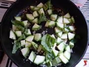 Dopo aver lasciato soffriggere olio, cipolla e burro, si può procedere con l’aggiunta delle zucchine tagliate a dadini in precedenza e lasciar cuocere per almeno15 minuti a fiamma moderata e coprendo la padella.