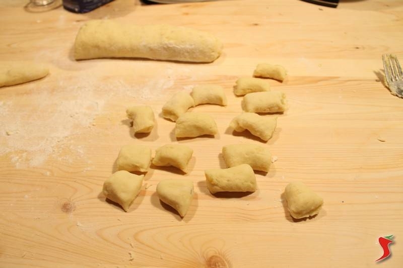 Creare una striscia di impasto e con il retro di un coltello creare gli gnocchi. La grandezza media di uno gnocco e di 1,5 cm, ma ovviamente va a piacere e a gusto. Questi sono i passaggi da seguire per cucinare i classici gnocchi di patate, voi sbizzarritevi per creare il vostro condimento.