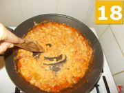 Intanto il sughetto con le salsicce si sarà cotto (16) per circa 20 minuti. A questo punto unite la besciamella (17) al sugo e mescolate bene (18) per amalgamare i due ingredienti. Aggiustate di sale e lasciate insaporire per qualche minuto a fuoco molto basso, quindi riversate il condimento in una scodella.