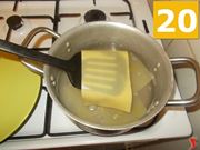 Ora prendete una pirofila da forno, ungetene il fondo (22) e quindi stendeteci sopra una sfoglia di pasta (23). Quindi con un cucchiaio prendete il sugo di salsicce e besciamella e iniziate a stenderlo sulla pasta (24), ricoprendola del tutto con una strato spesso.