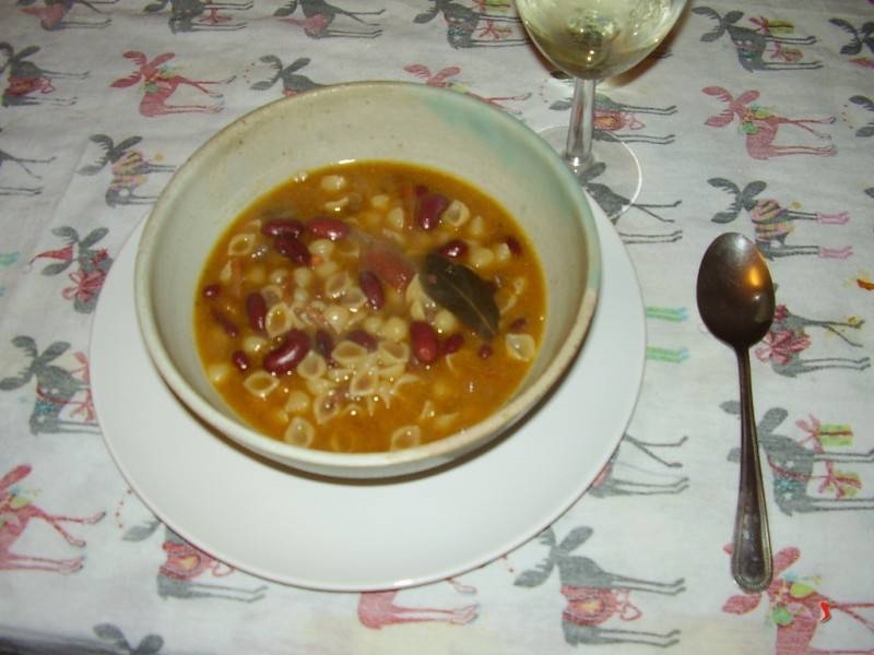 Una volta cotti i fagioli non vi resta che unirvi la pasta da minestra a vostra scelta tra le tante reperibili in commercio, seguendo esattamente i tempi di cottura indicati in confezione. Se l'acqua vi sembra poca per cuocere la pasta potrete aggiungerne di calda. Portate ad ebollizione la minestra e attendete la cottura della pasta, quindi spegnete il fuoco e aggiungete il parmigiano con un filo d'olio extravergine d'oliva e del pepe a piacere. Servite quindi in un apposito piatto da minestra. La minestra di fagioli è ottima sia in inverno ben calda che in estate servita fredda.
