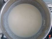Appena il latte sarà pronto, aggiungerlo al composto di burro e farina molto lentamente e girate, onde evitare che si possano formare dei grumi. Continuare a girare e lasciare in cottura per almeno dieci minuti.