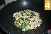 Tagliate le zucchine a rondelle molto sottili. Aggiungete le zucchine (4) e fate cuocere per qualche minuto. Mescolate e salate. Aggiungete, poi, il latte (5) e una spolverata di pepe(6).