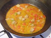 Una volta ridotto il vino ad un sughetto aromatico giallino misto con il grasso della salsiccia aggiungete la passata di pomodoro con i pezzi, salate e quindi coprite con un coperchio per lasciare andare la cottura per circa 10 minuti. Nel frattempo grattate il parmigiano.