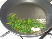 Una volta dorati gli spicchi d'aglio aggiungete gli spinaci lessati alla padella, facendoli aromatizzare bene per circa dieci minuti, il tempo di cottura della pasta che avrete nel frattempo messo a lessare nell'acqua in cui avete cotto la verdura.
