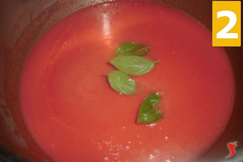 Per prima cosa dovete preparare il sugo di pomodoro. Scaldate un filo di olio in una pentola e aggiungeteci mezza cipolla da far rosolare (1). Aggiungete la polpa di pomodoro, il sale e qualche foglia di basilico fresca (3). Lasciate cuocere per 10/15 minuti. Intanto in una padella preparate un filo d'olio e aggiungete la carne macinata (3)