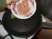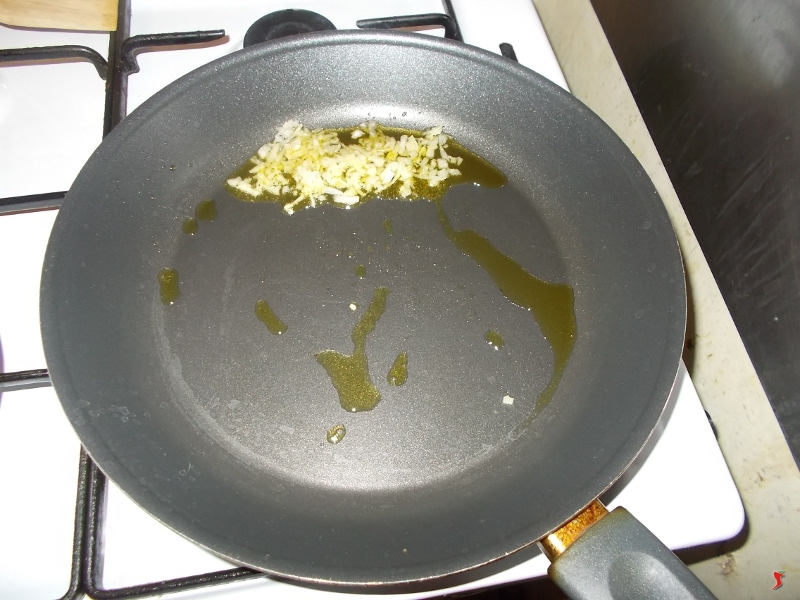 Quindi iniziate a preparare un soffritto classico e leggero, con la cipolla. Prendetene un quarto e tritatela finemente. Quindi in una padella grande ed antiaderente versate circa quattro cucchiai di olio e fateli scaldare per poi mettervi a soffriggere la cipolla finché non diviene trasparente.