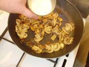 Dopo un paio di minuti iniziate ad aggiungere il vino per farlo sfumare. Questo creerà un sughetto di fondo che si addenserà lentamente durante la cottura. Aggiungete una volta sfumato il vino anche il pepe nero e salate a vostro piacere. Lasciate andare quindi per circa 10 minuti. La cottura totale dovrà essere di circa 20 minuti. Quando mancano un paio di minuti alla fine mettete nella padella anche la panna per farla scaldare e amalgamare con i funghi.