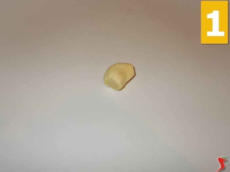 Cominciate la ricetta a partire dal soffritto, per cui sbuccerete lo spicchio d'aglio (1) per metterlo in una casseruola con cinque cucchiai di olio extravergine di oliva (2) a dorare a fiamma media. Quando l'olio è caldo aggiungete anche le acciughe (3) e iniziate a farle sciogliere lentamente, aiutandole con il cucchiaio di legno.