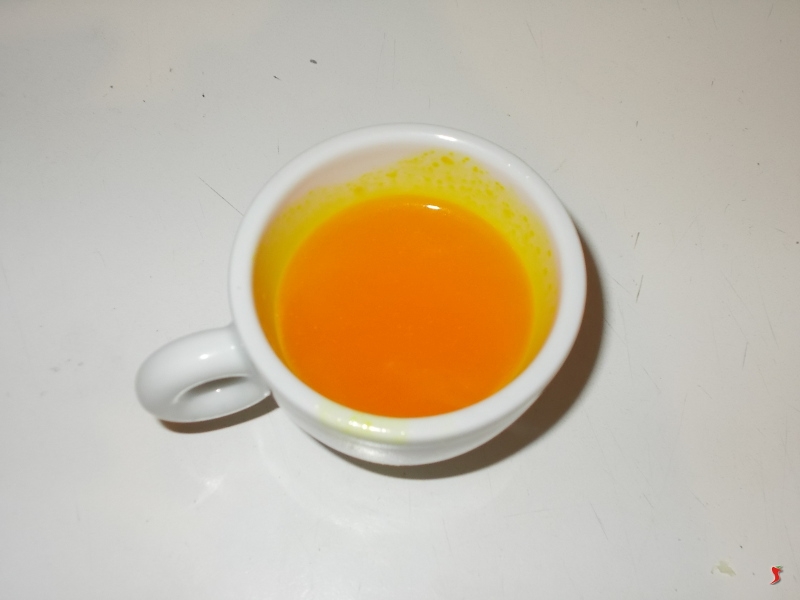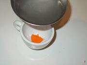 Nel frattempo mettete la polvere di zafferano in una tazzina. Con un mestolo prendete dell'acqua bollente di cottura della pasta e versatela nella tazzina per sciogliere lo zafferano. Mescolate bene con un cucchiaio per far sciogliere bene il tutto.