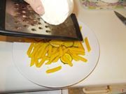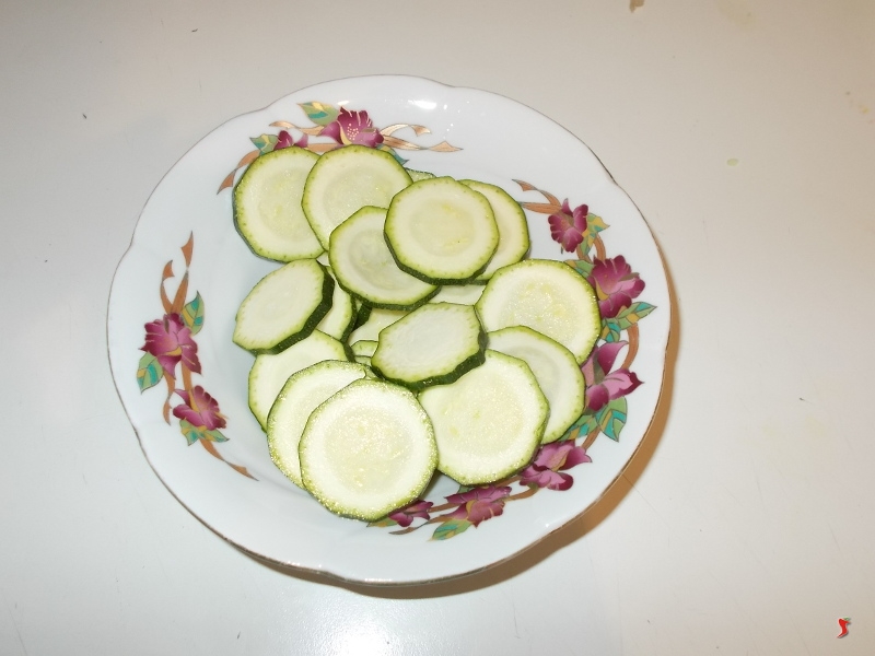 Per cominciare dovete lavare bene la zucchina e quindi tagliarne via le estremità. Quindi tagliatela a rondelle e mettete da parte in una piccola scodella.