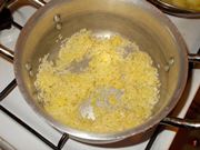 Quindi passate a fare il soffritto in una pentola media dove sciogliere 20 g di burro a fuoco medio. Una volta sciolto prendete la cipolla e fatela rosolare fino a divenire trasparente.