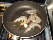 Fate cuocere dunque anche le mazzancolle, semplicemente scaldando un filo d'olio in una padella per dorare uno spicchio d'aglio. Quando pronto mettete le mazzancolle a cuocere per cinque minuti, girandole spesso. Quando pronte spegnete il fuoco.