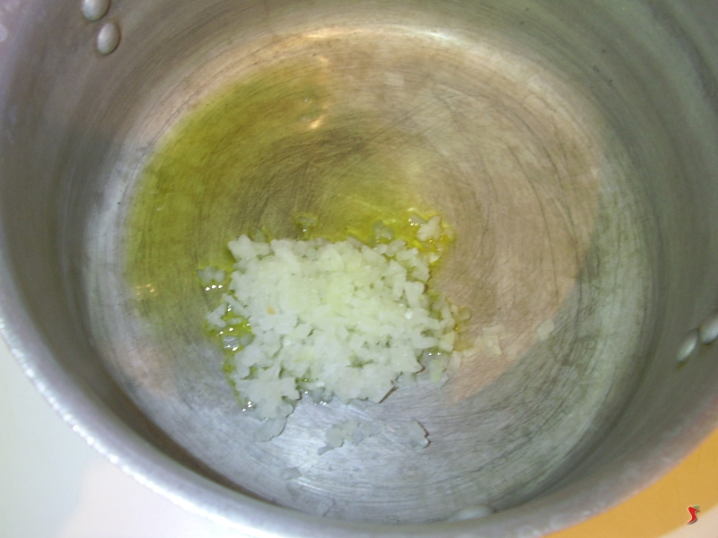 Il primo passo da fare per cucinare questa ricetta è quello di iniziare a preparare un sughetto leggero e semplice. Quindi iniziate con il tritare finemente la mezza cipolla e poi in una pentola media mettete quattro cucchiai d'olio a scaldare. Una volta caldo aggiungete la cipolla e fatela soffriggere fino a che diviene trasparente. Quindi aggiungete la passata di pomodoro, mescolate bene e salate leggermente. Lasciate andare per circa 15 minuti.