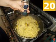 Ora non vi resta che mescolare bene il condimento con la pasta (19) aggiungendo in caso ancora acqua di cottura e spolverate con del pepe bianco (20) macinato fresco. Quindi tritate il prezzemolo e unitelo (21) alla padella con la pasta. Mescolate di nuovo bene ed impiattate per servire in tavola ben caldo.