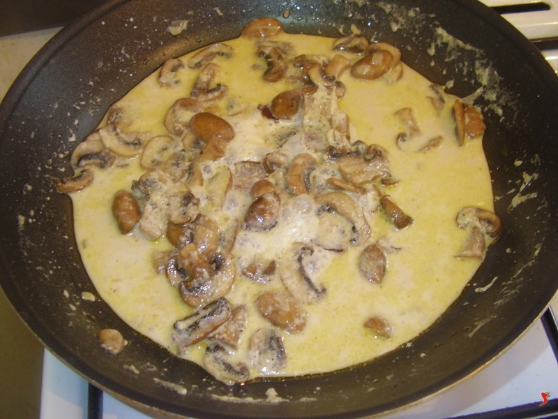 Nel frattempo avrete già messo l'acqua per la pasta a bollire, sempre per far coincidere i tempi di cottura delle tagliatelle e del condimento. Dopo 15 minuti di cottura nei funghi aggiungete la panna e lasciatela andare a fuoco basso per qualche minuto, solo per farla scaldare senza farla bollire.Una volta pronta la pasta scolatela e saltatela in padella. Mescolate bene e fate assorbire bene il condimento alle tagliatelle e quindi aggiungete il parmigiano. Mescolate bene e impiattate ben caldo, e se volete spruzzate il piatto con una spolverata di prezzemolo.