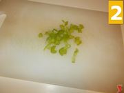Iniziate la ricetta preparando gli ingredienti per il soffritto a partire dalla cipolla che sbuccerete e triterete finemente (1) con il coltello grande. Quindi tritate grossolanamente anche il sedano (2) e la carota (3).