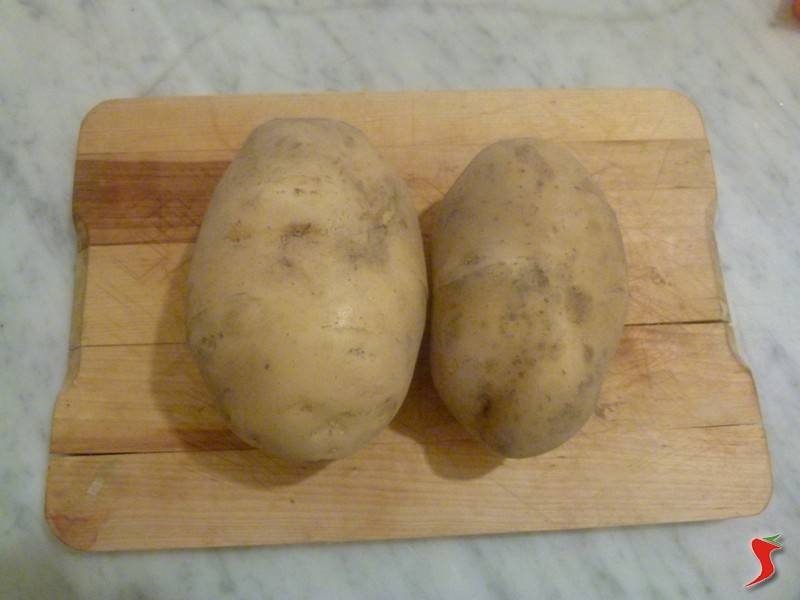 Poi è la volta delle patate, le quali vanno private della loro buccia e poi lavate attentamente fin quando l’acqua non si presenta limpida.