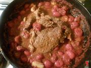 Quando il condimento sarà a metà della sua cottura, andare ad aggiungere la fetta di carne all’interno della padella insieme ad esso e lasciar ultimare la cottura con tutti gli elementi necessari alla ricetta insieme.