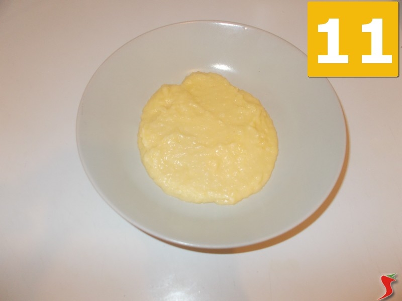 A questo punto trasferita la crema dal pentolino in un piatto fondo da portata (10) e lasciatelo raffreddare da parte per circa venti minuti(11). Terminato il tempo necessario alla crema per il raffreddamento, prendete la base dio pasta frolla e con un cucchiaio iniziate ad aggiungerla sopra (12), fino a quando non avrete ricoperto interamente la base.