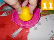 Quindi iniziate a trattare il limone, tagliandolo in due parti (10) per poi estrarne il succo (11) spremendolo con lo spremiagrumi. Spremete entrambi i limoni e tenete il succo a parte (12).