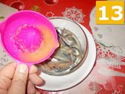 Riprendete quindi le acciughe, e versateci dentro il succo di limone (13), fino a ricoprirle interamente (14). Infine chiudete il contenitore e mettetelo in frigo (15), per far marinare le acciughe per almeno 3 ore, anche se si consiglia, per aumentarne il gusto, di marinarle per 12 ore.