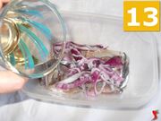 Quindi versateci sopra l'aceto di vino (13) e il succo di limone (14). Irrorate con un filo di olio extravergine di oliva (15) e chiudete il coperchio.