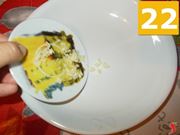 Ora mettete in un piatto fondo prima l'aglio tritato (22), poi il prezzemolo (23) e infine il pan grattato (24). Mescolate bene e lasciate a parte.