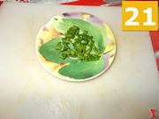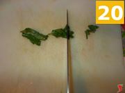 Poi lavate bene il prezzemolo (19) sotto l'acqua corrente, e quindi tritatelo (20) finemente per metterlo a parte (21) in un piattino.