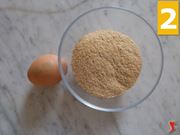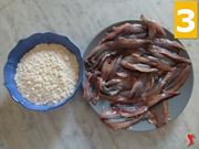 Per preparare questa ricetta buonissima gli ingredienti necessari sono i seguenti: farina e pane grattugiato (1), l’uovo (2) e le acciughe (3).