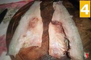 Per prima cosa bisogna squamare e pulire il pesce eliminando le interiora. Basta incidere la pancia, estrarre le interiora e lavare bene il pesce sotto acqua corrente. Dopo queste operazioni eliminate la testa incidendo sotto alle branchie (1) prima da un lato e poi dall'altro. Per il secondo lato, incidete dalla branchia verso la testa e poi premete per spezzare l'osso che regge la testa. Pian piano ,con la punta del coltello incidete dalla pancia verso il centro e arrivati a metà fermatevi (2). Fatelo anche dall'altro lato in modo da ottenere una "tasca". Posizionate il coltello in orizzontale (3) in questa tasca e fatelo scivolare dall'alto verso il basso o viceversa per ricavare il filetto.
